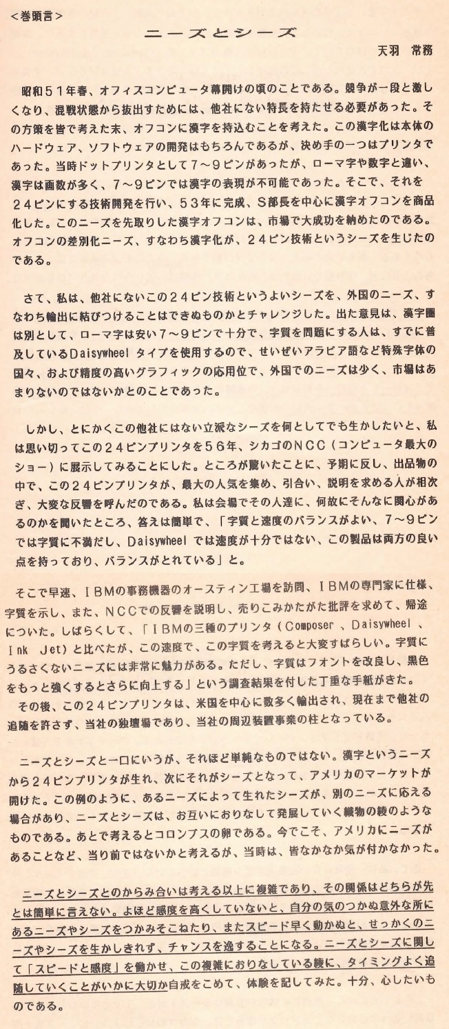1986年10月、薄型漢字プリンタ「PT3300S」(漢字80CPS, 80桁, 高さ98o, 「PT3600S」(漢字80CPS, 136桁)プッシュトラクタ内臓タイプ発表) |