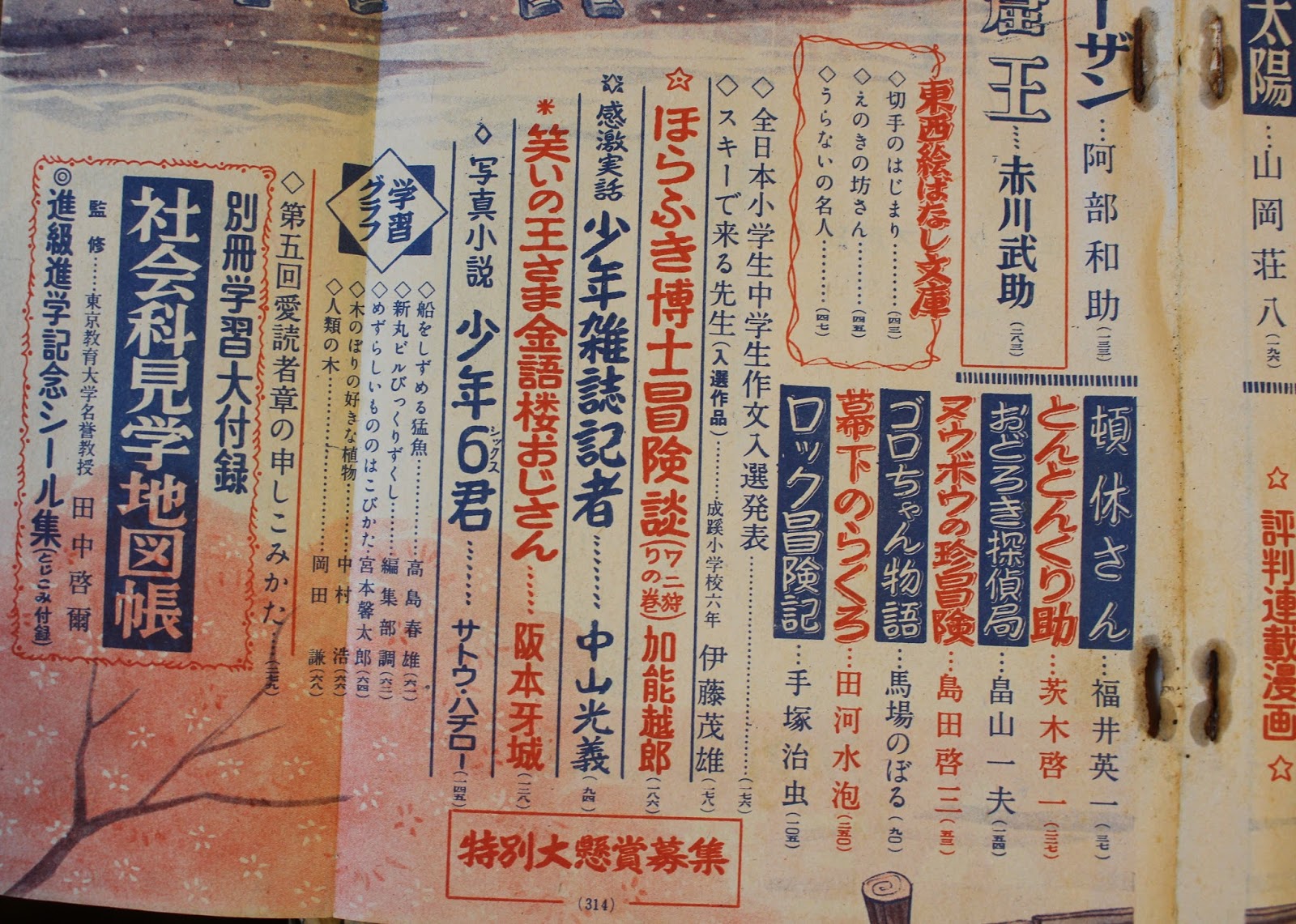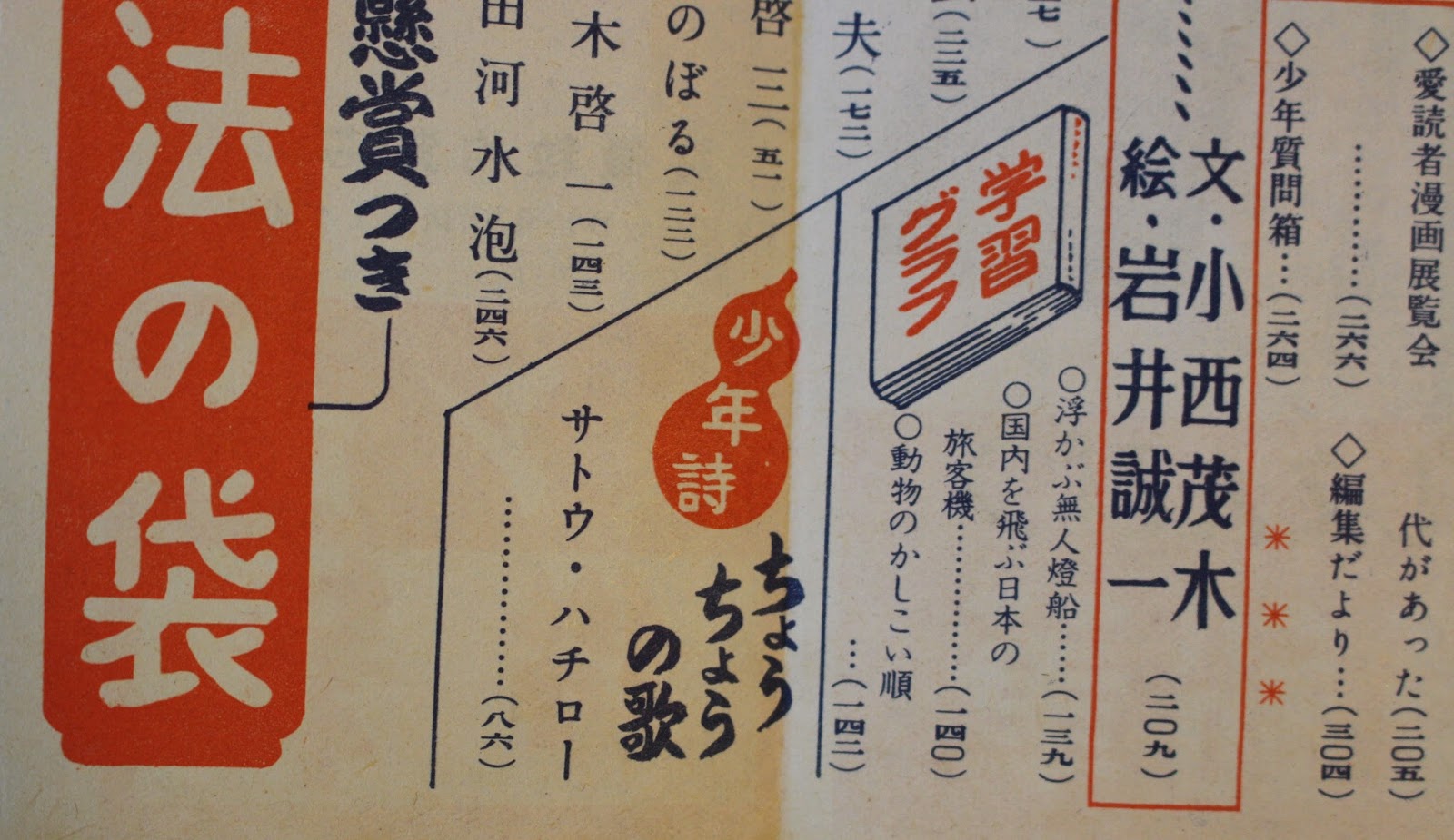 たとえば、手持ちの(4)少年クラブ(昭和28年4月号)の目次の一部を以下に示します。