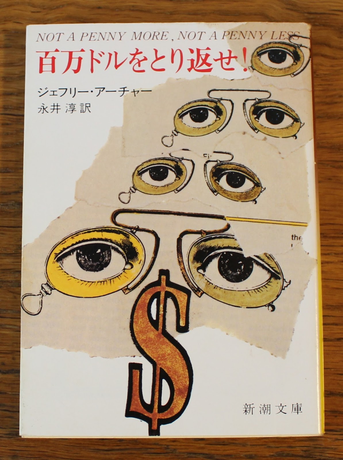 (1)「百万ドルをとり返せ!」NOT A PENNY MORE, NOT A PENNY LESS, (c)1976 by Jeffrey Archer : 1977年8月30日発行, 1993年9月15日第52刷改版, 2009年8月25日72刷, ジェフリー・アーチャー 著, 永井淳 訳, 新潮文庫 ア-5-1, \926, 新潮社, ISBN978-4-10-216101-2 C0197