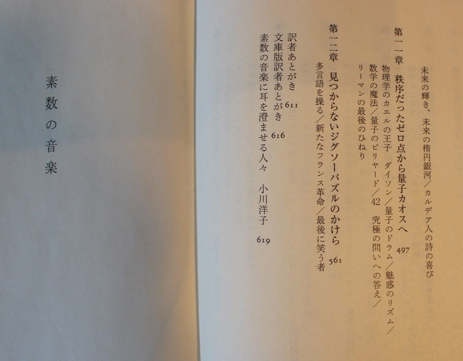 (1)「素数の音楽」THE MUSIC OF THE PRIMES, Copyright (c)2003 by Marcus du Sautoy:2013年10月1日 発行, マーカス・デュ・ソートイ(Marcus du autoy) 著, 冨永星 訳, \890 新潮文庫 シ-38-1, ISBN978-4-10-218421-9 C0198