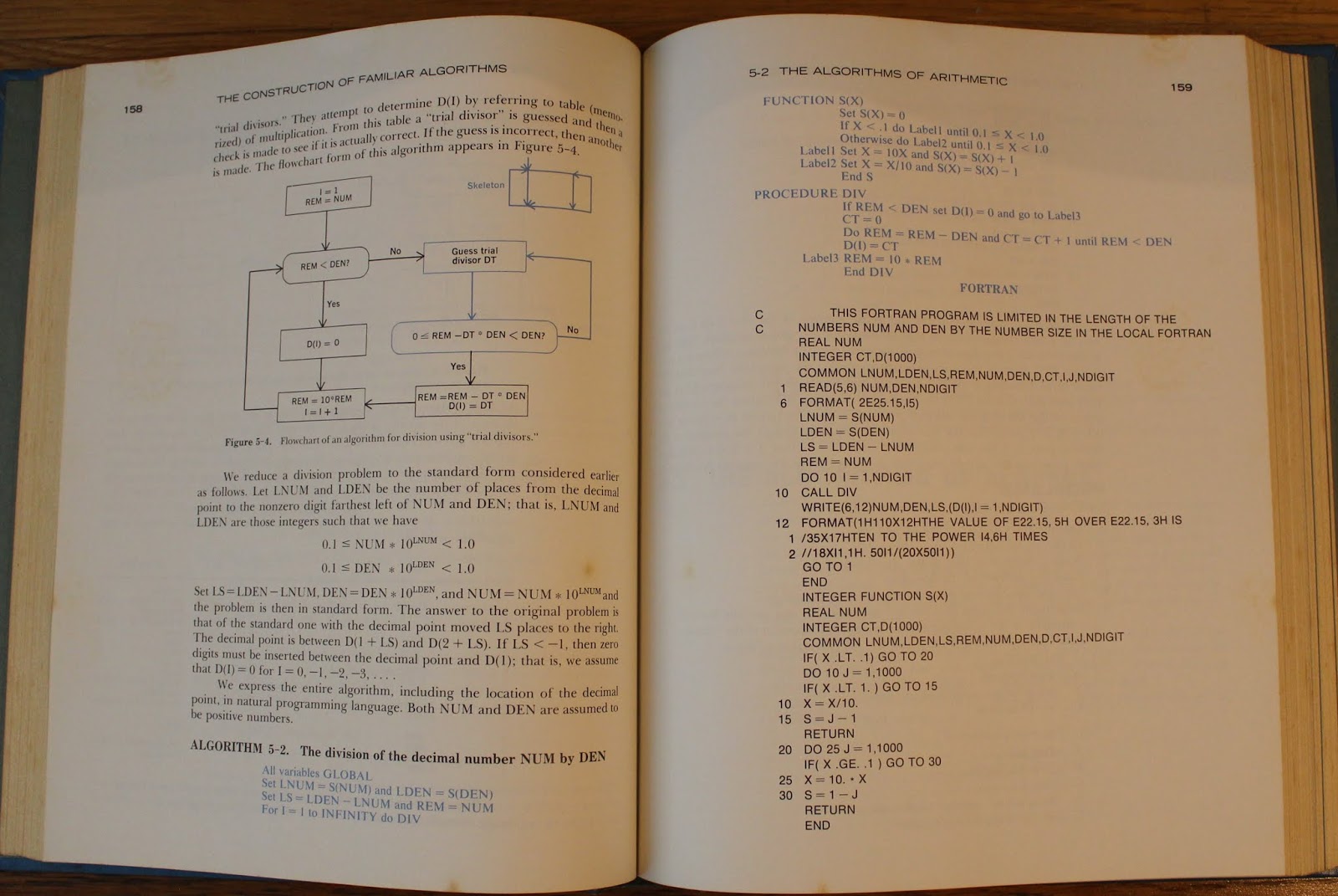 いろいろな分野の問題が提示されています。それを分かりやすいアルゴリズムで示し、流れ図(Flow chart)とともにプログラム言語(ここではALGOLとFORTRAN)でそれぞれ記述して比較・例示しています。