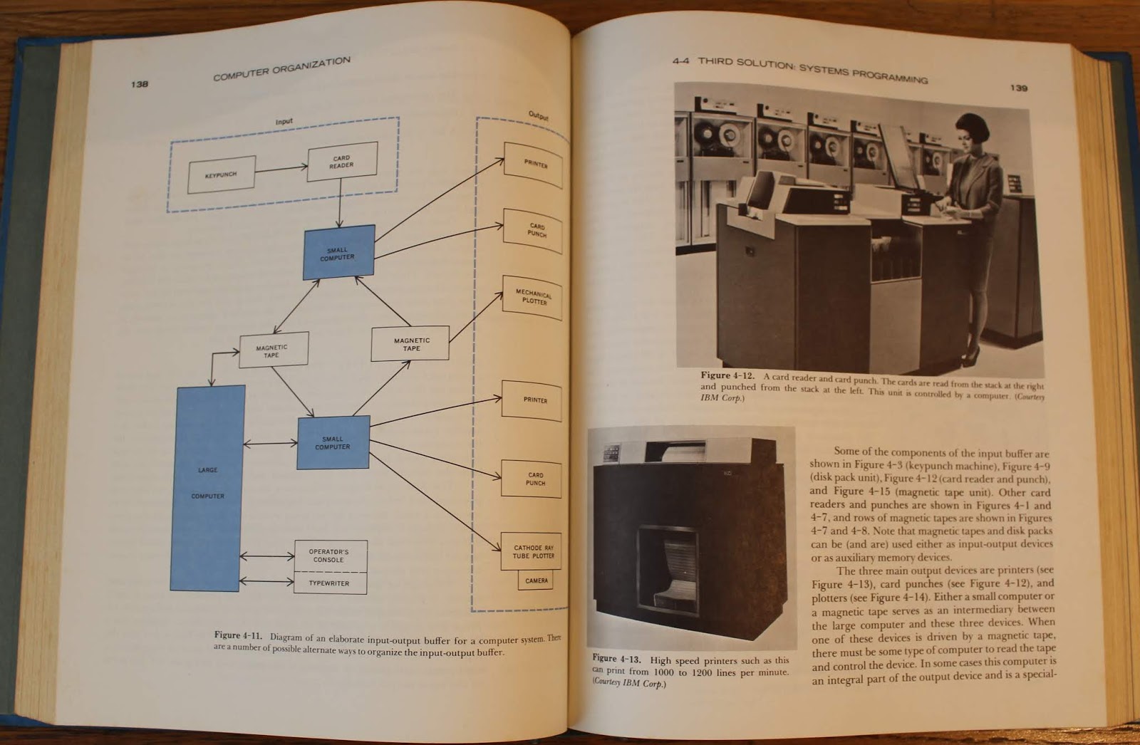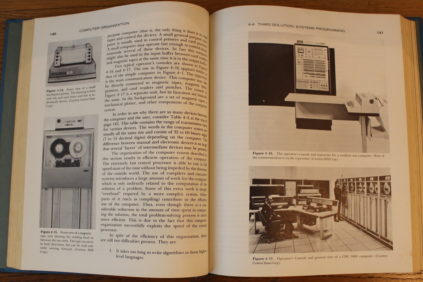 流れ図は、今や時代遅れですが当時は必需品でした。使われるコンピュータは当時主流だった大型機です。典型的なプログラム作りの手順が紹介されています。