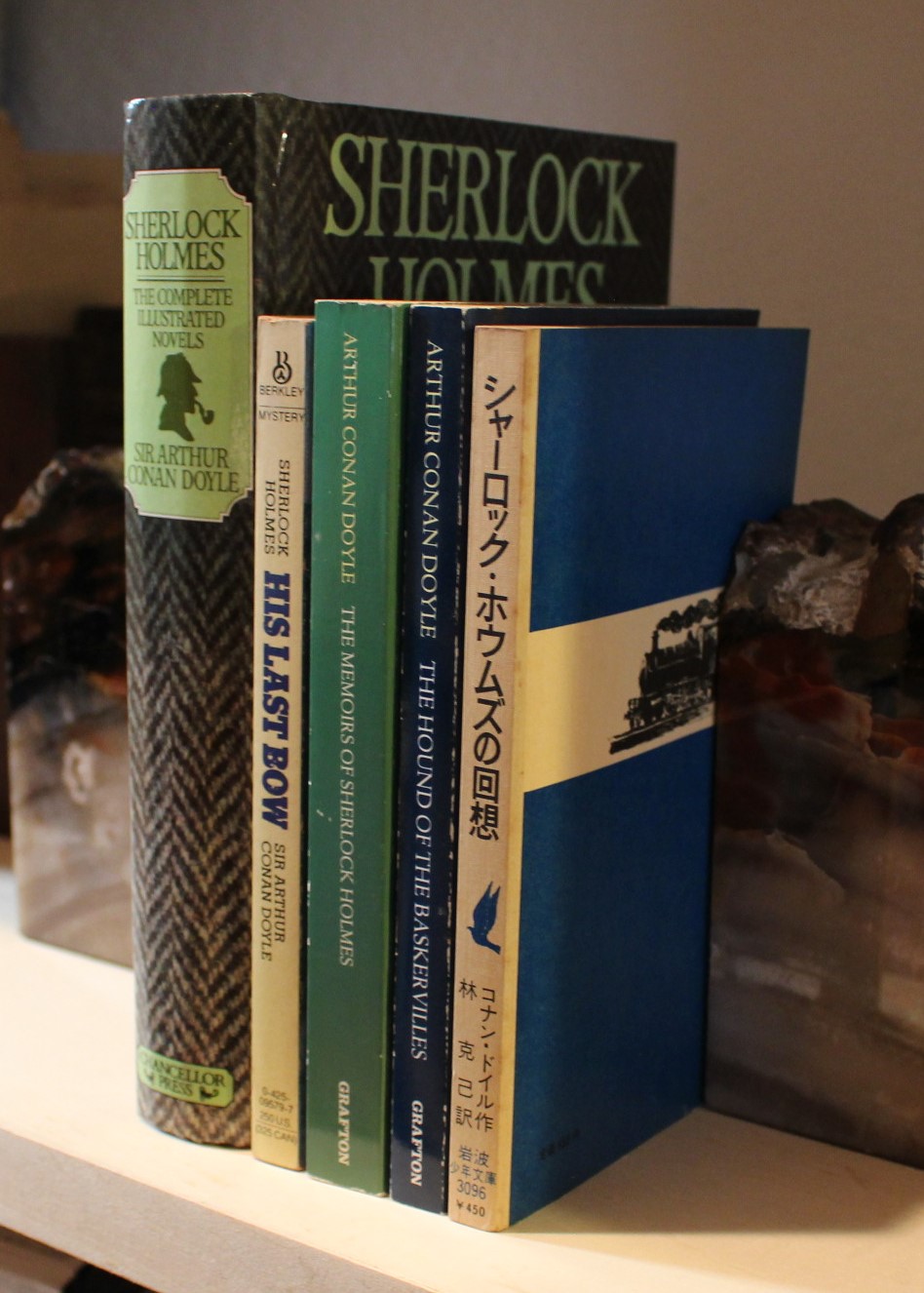 それなのに何故私の本棚にシャーロック・ホームズ関連の本があるのか? それは娘が結婚して家を出るときに置いていったからです。熱心なシャーロキアン(*1)であった娘のために大切に保管していたのですが、最近私の書庫に移してそれなりの扱いをしてあげることにしました。【注】(*1)主人公シャーロック・ホームズの熱狂的なファンのことをシャーロキアンと呼ぶ。イギリスではホームジアン 、アメリカや日本ではシャーロキアンまたはシャーロッキアンと表記する。