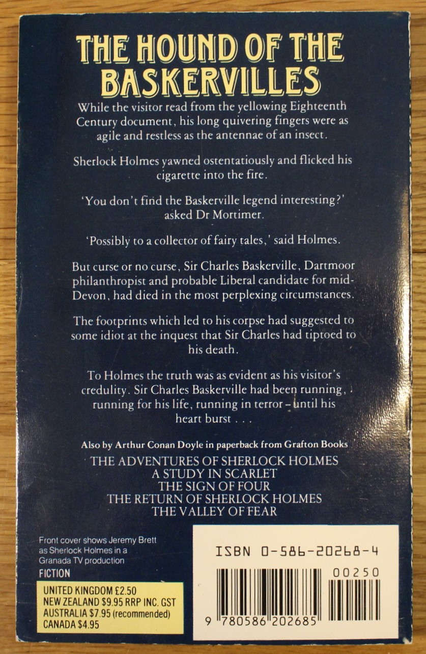 (2) ARTHUR CONAN DOYLE「THE HOUND OF THE BASKERVILLES」:GRAFTON BOOKS, UNITED KINGDOM £2.50, NEW ZEALAND $9.95, AUSTRALIA $7.95, CANADA $4,95, ISBN 0-586-20268-4